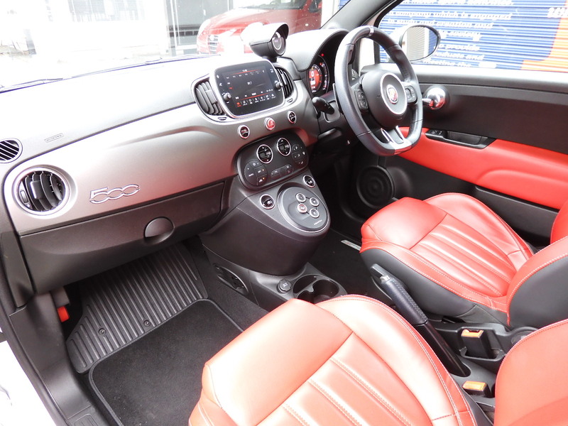 純正17intAW 電動キャンバストップ Apple Carplay レッドレザーシート 幌状態良好 レーダー リアクリアランスソナー アバルト70周年エンブレム アルミフューエルキャップ ETC TRIBUTO Ferrariキーカバー