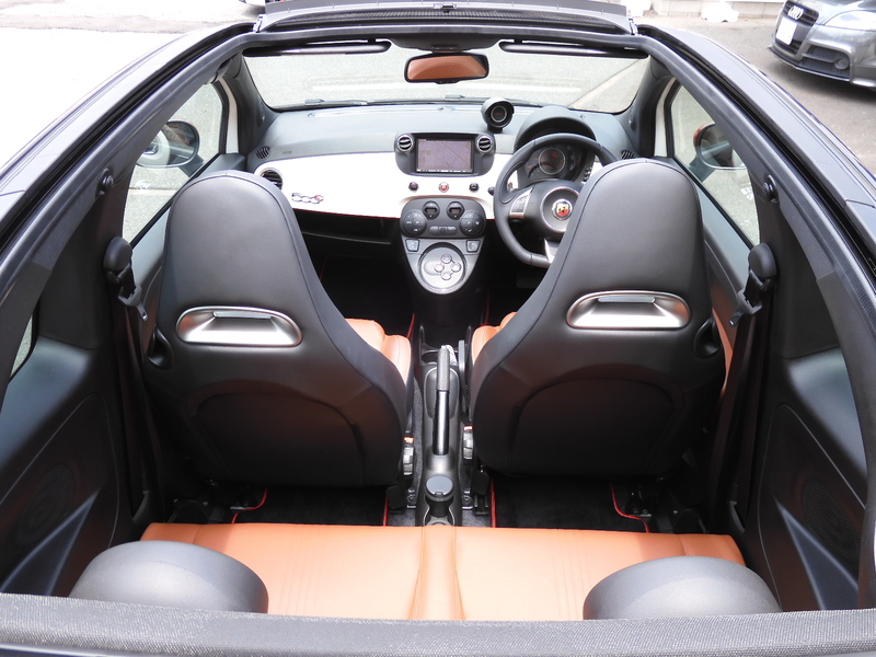 ワンオーナーのアバルト入庫!電動オープントップはボタン一つで楽々開閉!しかも走行中の開閉もできるので突然の雨でも即座に対応可能!これからのシーズンのツーリングにはとてもおススメ!