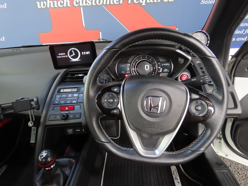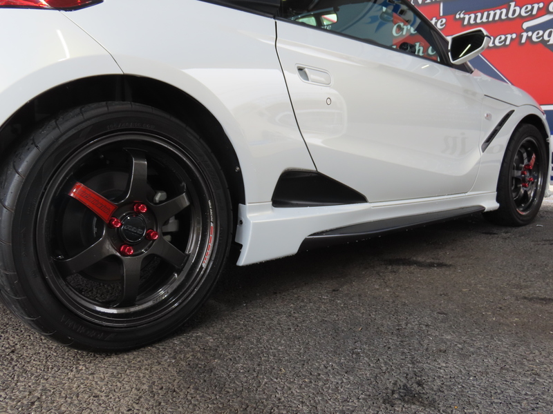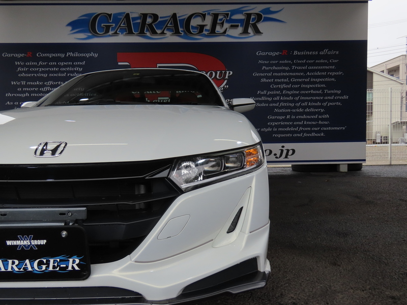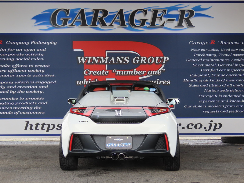 無限エアロ装着の綺麗なS660入庫です!センターディスプレイやRAYsアルミ、吸排気などツボを押さえたパーツチョイスで非常にエレガントな仕上がりです!