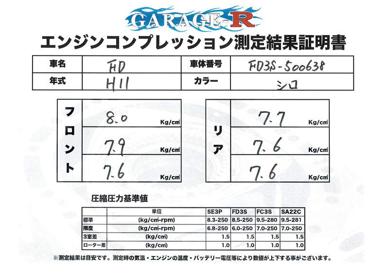 | 外装色 | ホワイト | 型式 | GF-FD3S |