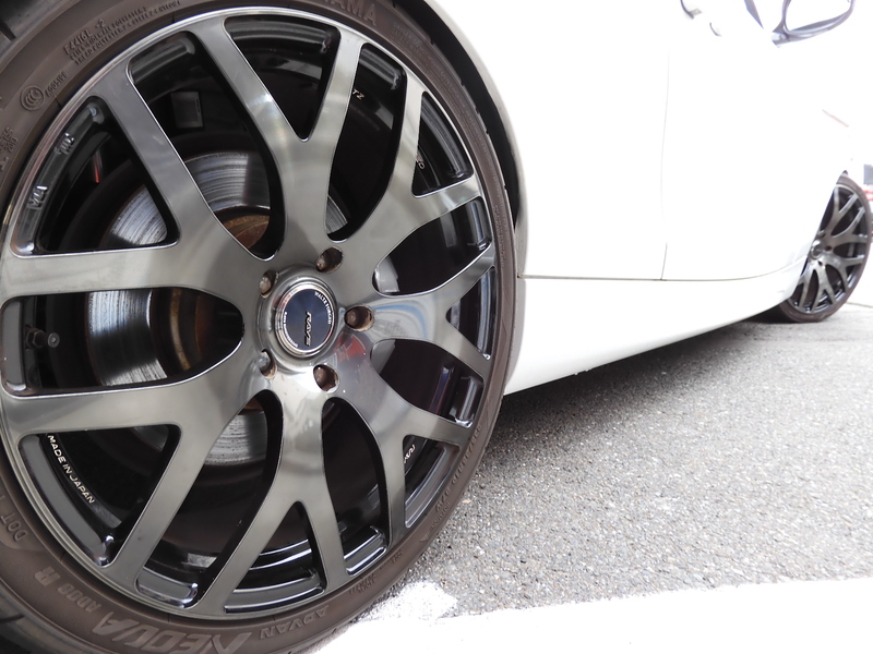 RAY's19インチAW カーボントランクスポイラー 社外Fバンパー リアディフューザー ACSCHNITZERタワーバー マフラーカッター ブラックレザーシート メモリー付きパワーシート シートヒーター 純正ナビ ETC バックカメラ レーダー オートライト CD DVD Bluetooth キーレス