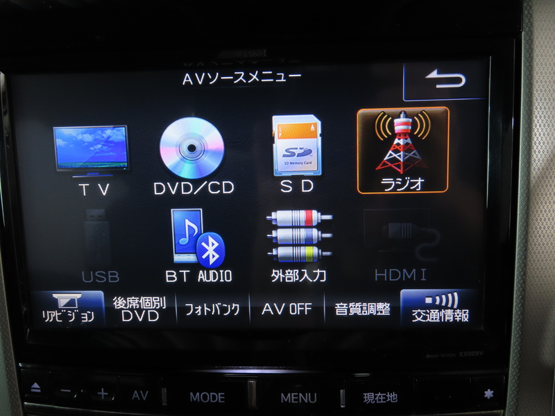 カーナビ, 地デジ, CD, DVD, Bluetooth エアコン, パワーステアリング, パワーウィンド, ABS, キーレス, 運転席エアバッグ, 助手席エアバッグ, ESC, アルミホイール, ETC, HIDヘッドライト, バックカメラ |