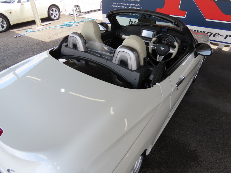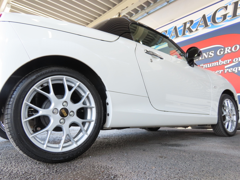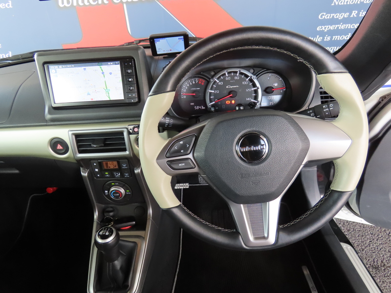 | 改造/チューニング内容 | 純正BBS16incAW MOMO本革巻ステアリング 本革巻シフトノブ 本革シート 専用エンブレム 専用スカーフプレート 電動ハードトップ ダイハツ純正ナビ レーダー探知機 ドラレコ ETC2.0 | ||