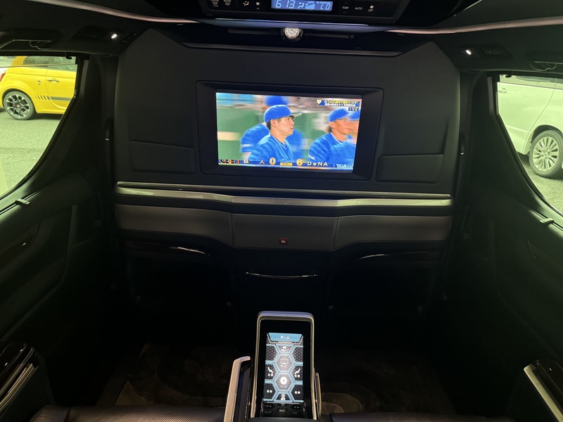 アルファードの最上級グレードロイヤルラウンジが入庫!!まさに至れり尽くせりのこの1台のリアシートは完全に仕切られた2人だけの空間。ファーストクラスのおもてなしが可能です!!ロイヤルラウンジ専用のリアエンターシステムは大画面24インチ液晶ディスプレイ。お好みの映像を大迫力で楽しみながら移動できます。是非お早めに!!