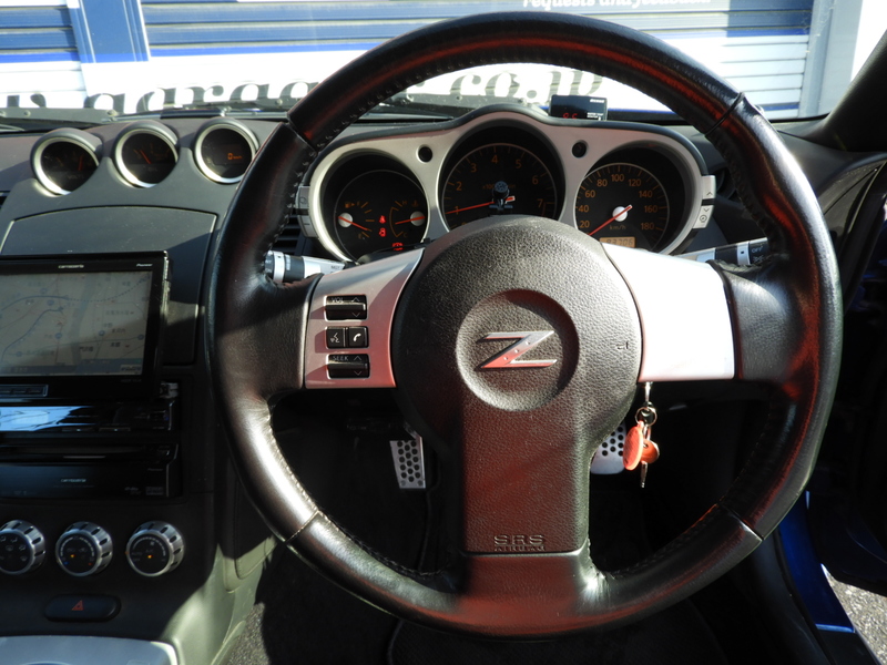 人気のフェアレディZのブルーが入庫致しました!車高調、アルミ、マフラーとライトなカスタムのお車ですので、このまま乗るも良しカスタムベースにするも良しの1台です!
