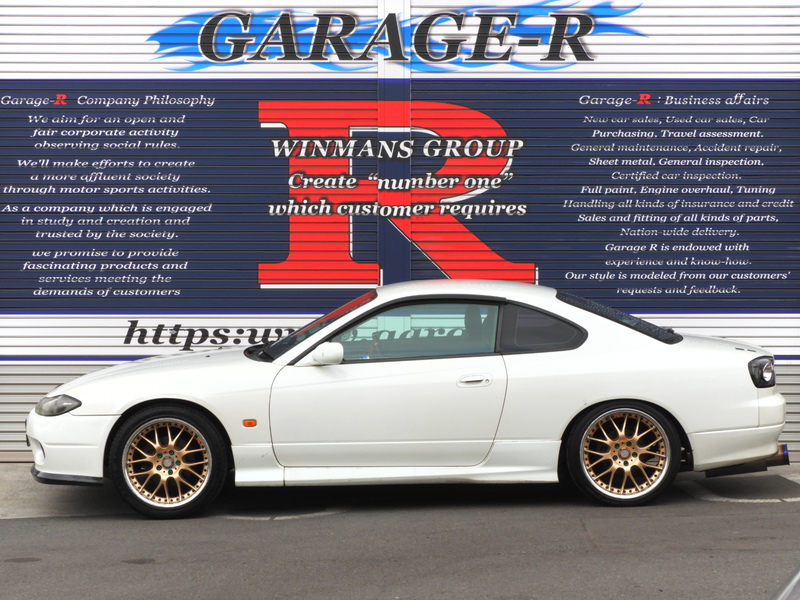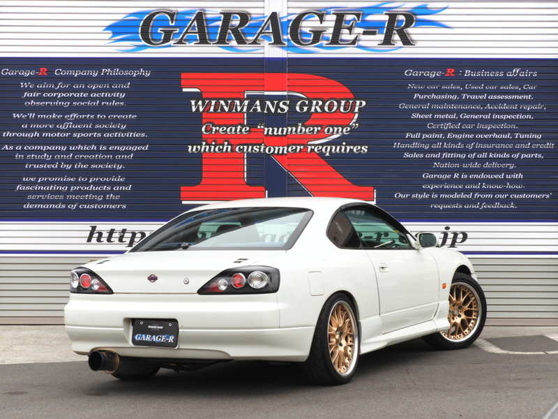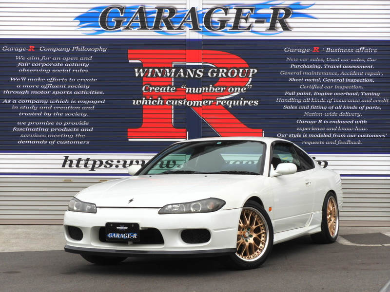 人気のS15シルビアです!シンプルなマフラー、ホイール、車高調程度のカスタムなのでチューニング・カスタムベースにもオススメの1台です!