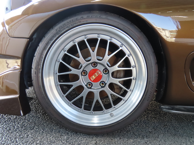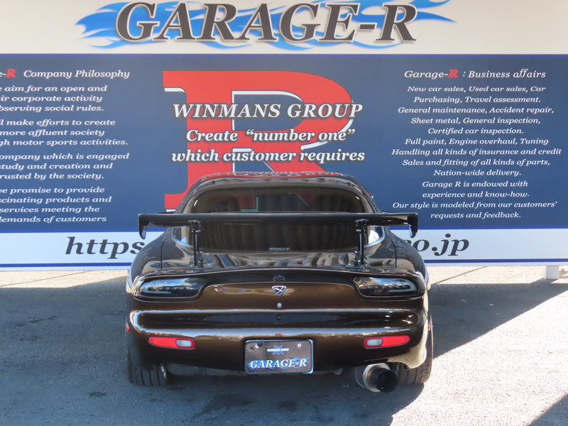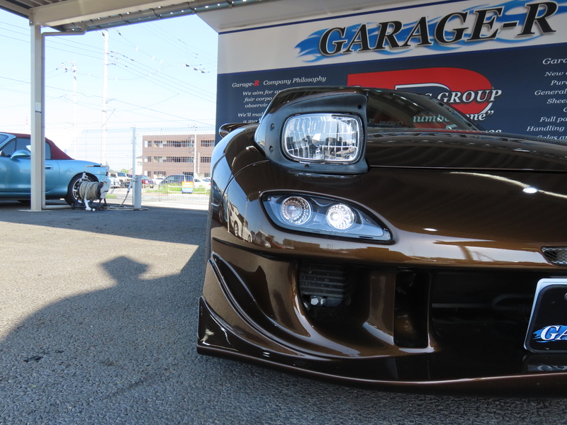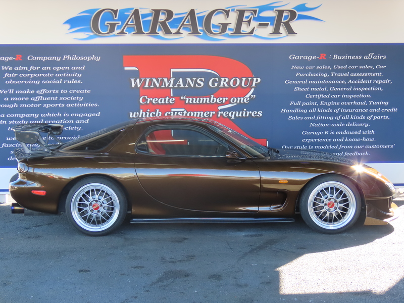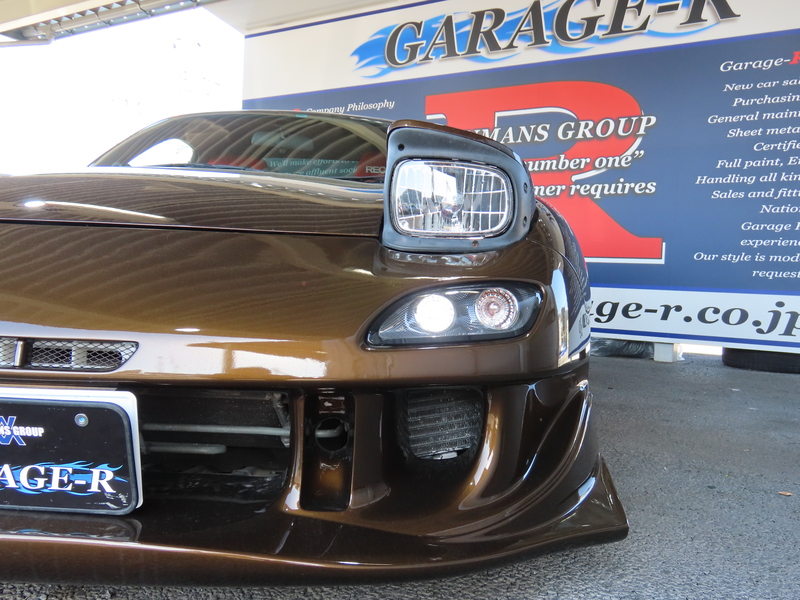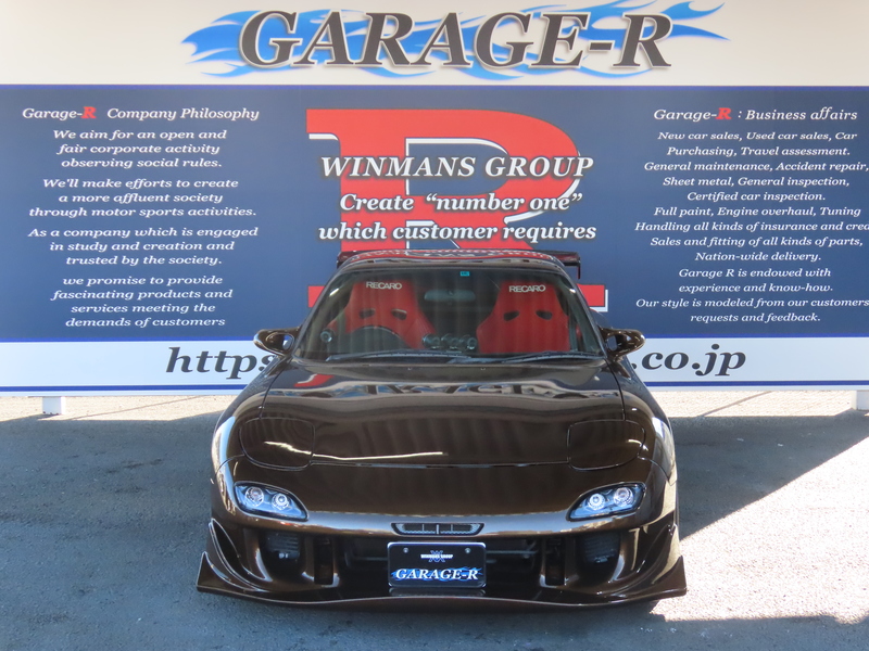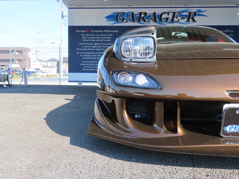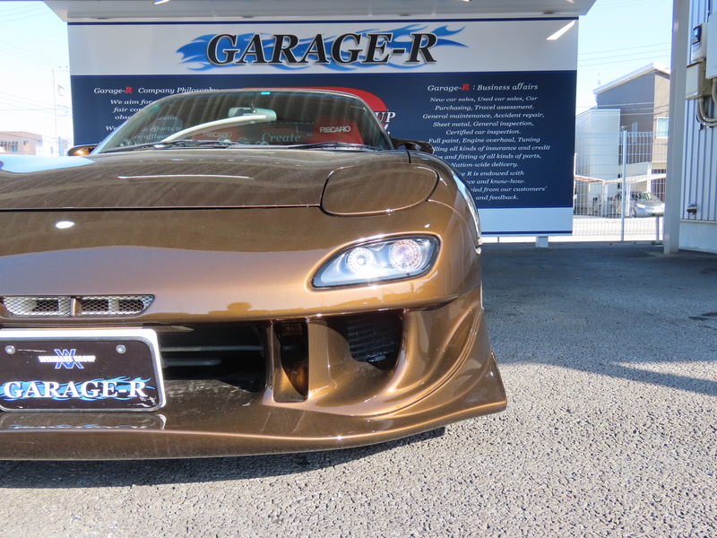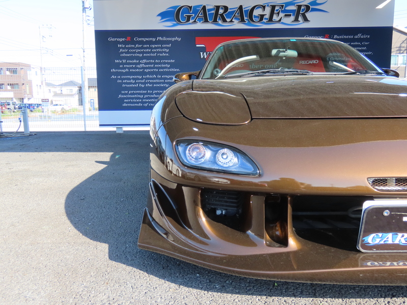 外装はRE雨宮フロントバンパーに藤田エンジニアリングのサイドステップを装着されており、ブラウンにオールペイント!