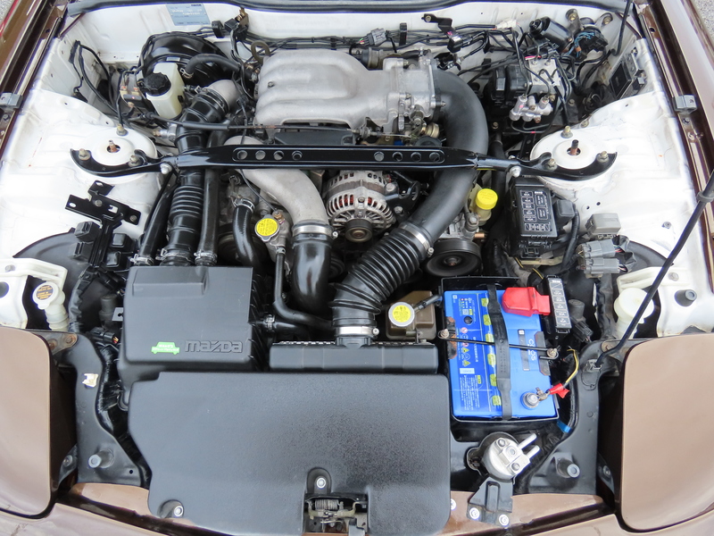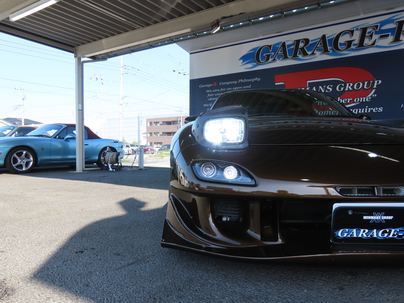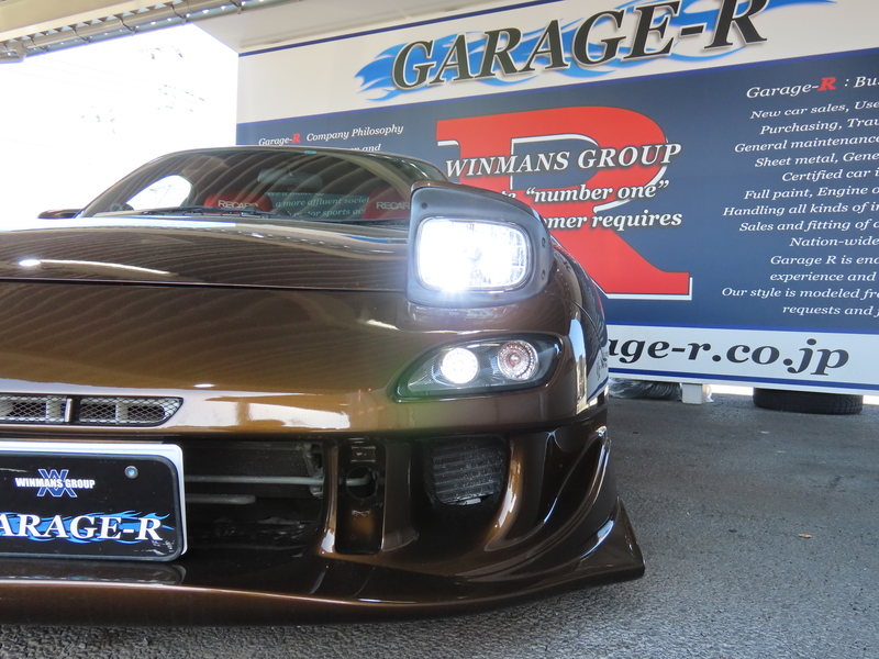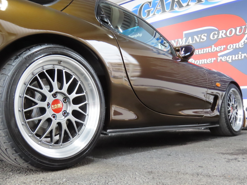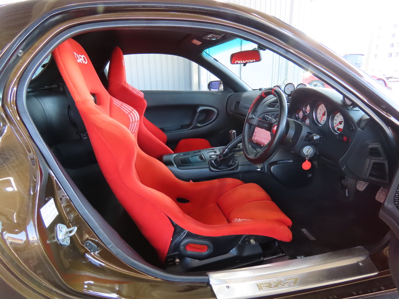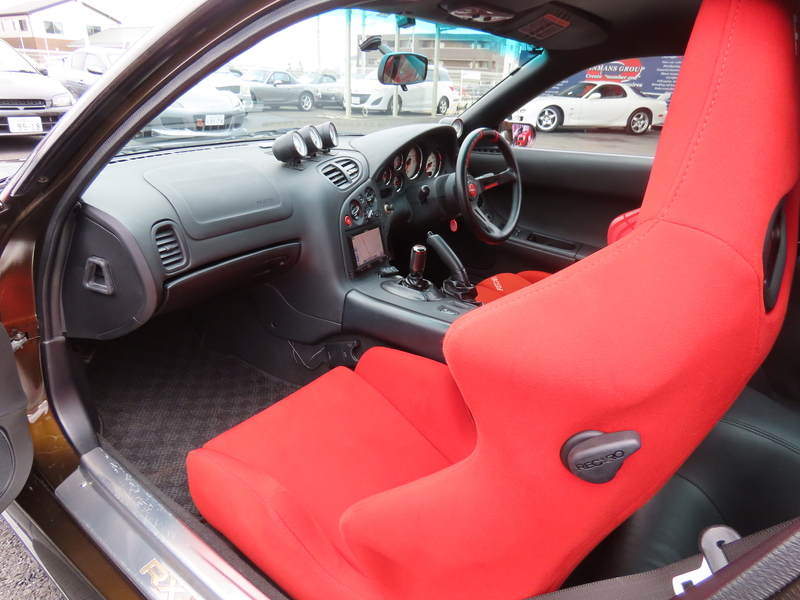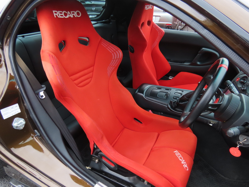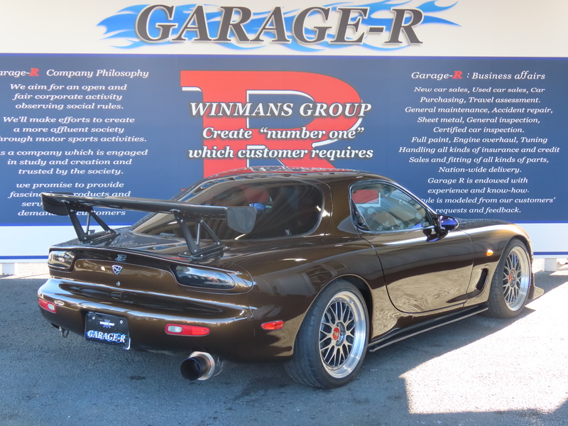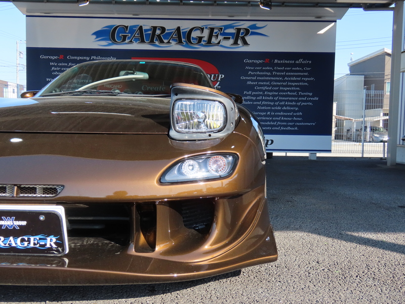 外装はRE雨宮フロントバンパーに藤田エンジニアリングのサイドステップを装着されており、ブラウンにオールペイント!